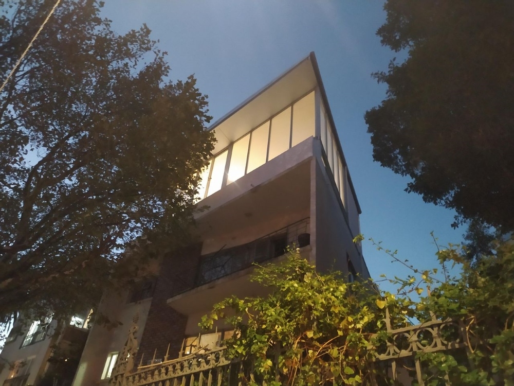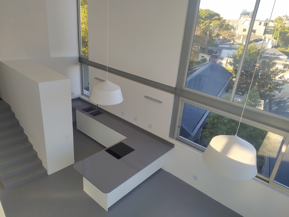 A new penthouse addition to a 1950s block of flats designed by Louis Karol. The design maximizes views over Table Mountain and the city with a double-volume space and mezzanine level. A steel structure is clad with steel and glass that lights up like an urban lantern at night time.